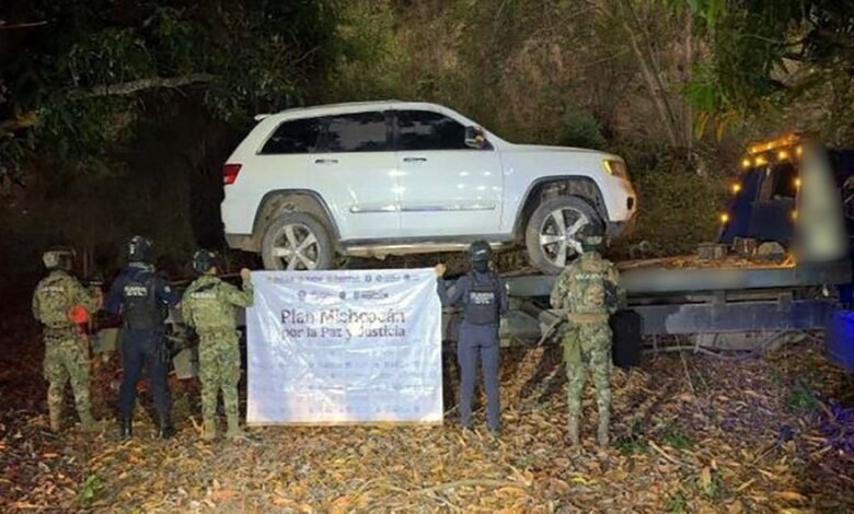 Aquila, Michoacán, a 16 de febrero de 2026.- Personal de la Marina, en un operativo de recorrido dentro del Plan Michoacán, aseguró una camioneta abandonada con impactos de bala y con reporte de robo.