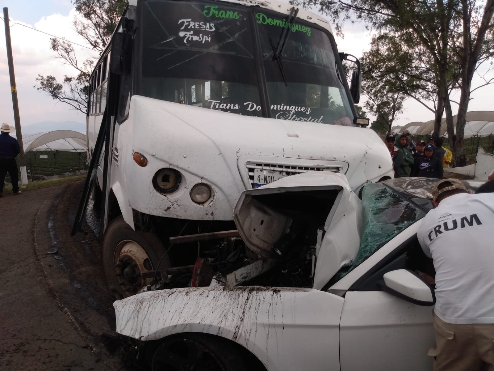 Tlalpujahua, Michoacán.- Este miércoles, el choque entre un camión de pasajeros y un vehículo compacto, sobre la carretera estatal Palos…