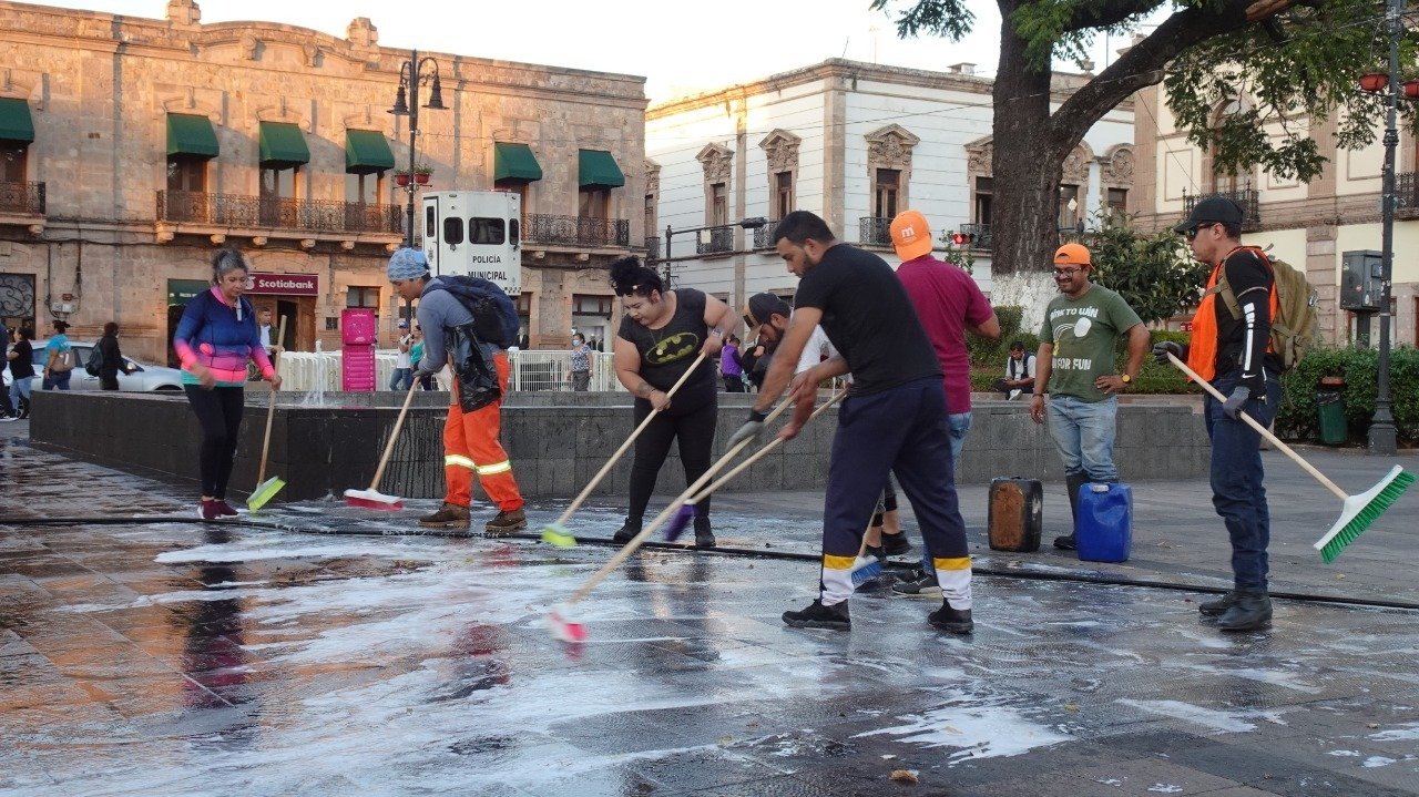 Limpian la Plaza Melchor Ocampo