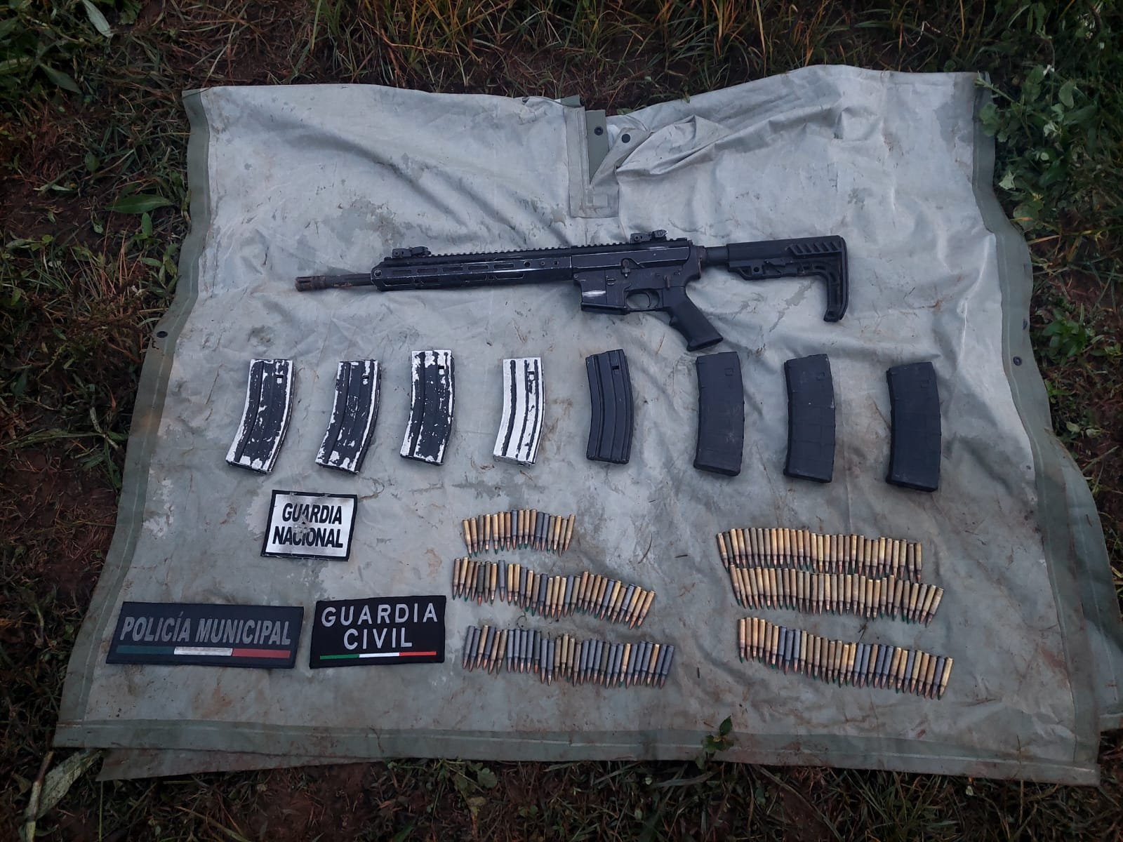 Hallan vehículos y armas en Tangancícuaro