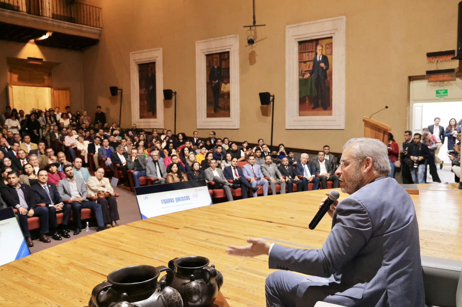 El gobernador Alfredo Ramírez Bedolla impartió una conferencia a la comunidad nicolaita
