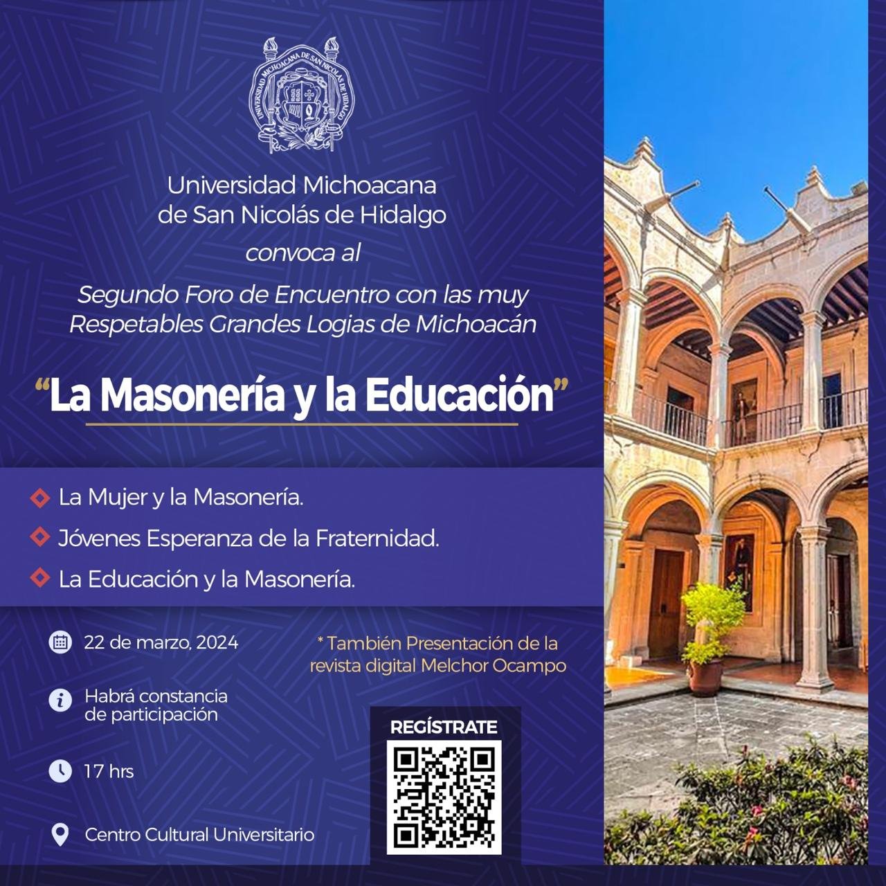 UMSNH realizará el segundo Foro “La Masonería y la Educación”