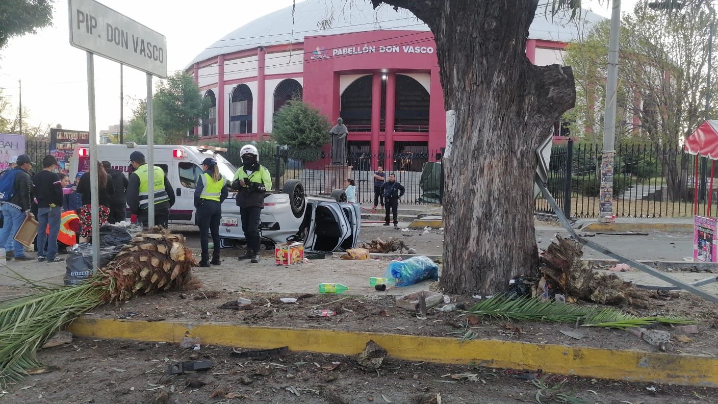 Aparatosa volcadura frente al Pabellón Don Vasco; hubo un herido