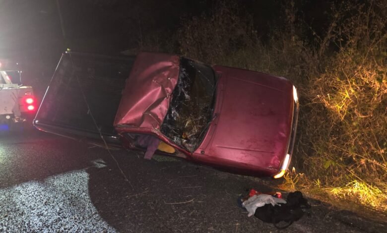 Zamora, Michoacán, a 17 de noviembre de 2025.– El conductor de una camioneta perdió el control y volcó, lo que provocó la movilización de cuerpos policíacos y de emergencia al lugar.