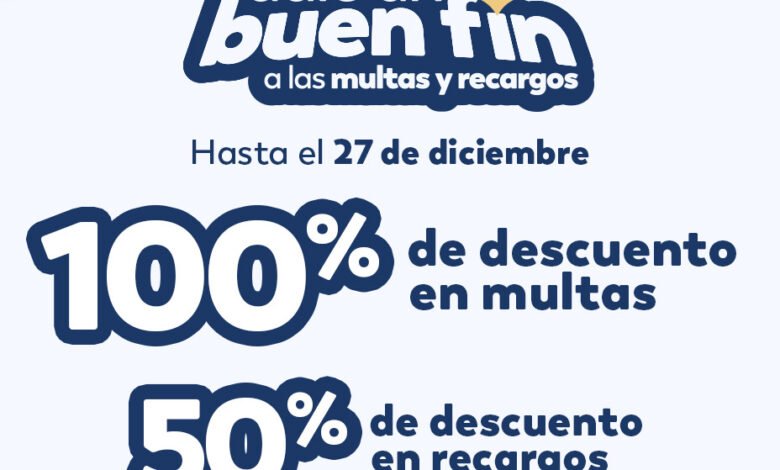 Las promociones, son: 100% en multas y 50% en recargos en impuestos predial, lotes baldíos, falta de banqueta, anuncios publicitarios, licencias de funcionamiento e ISAÍ. Asimismo, se otorgará 50% de descuento en recargos y 100% en multas en impuestos por anuncios publicitarios; y 90% de descuento en infracciones y multas municipales en cobro coactivo.