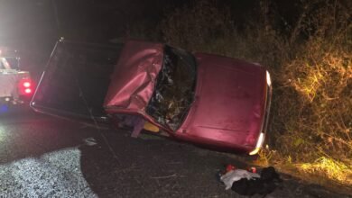 El vehículo quedó volcado sobre su costado derecho, quedo en un desnivel de la carretera, y fue llevado al corralón.