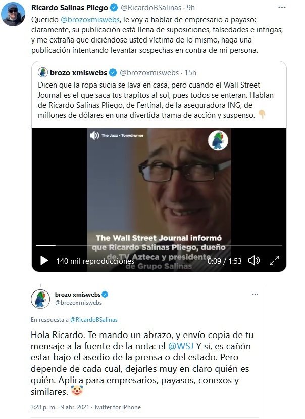 Viernes de Bax, ahora Ricardo Salinas Pliego vs Brozo por una nota del WSJ